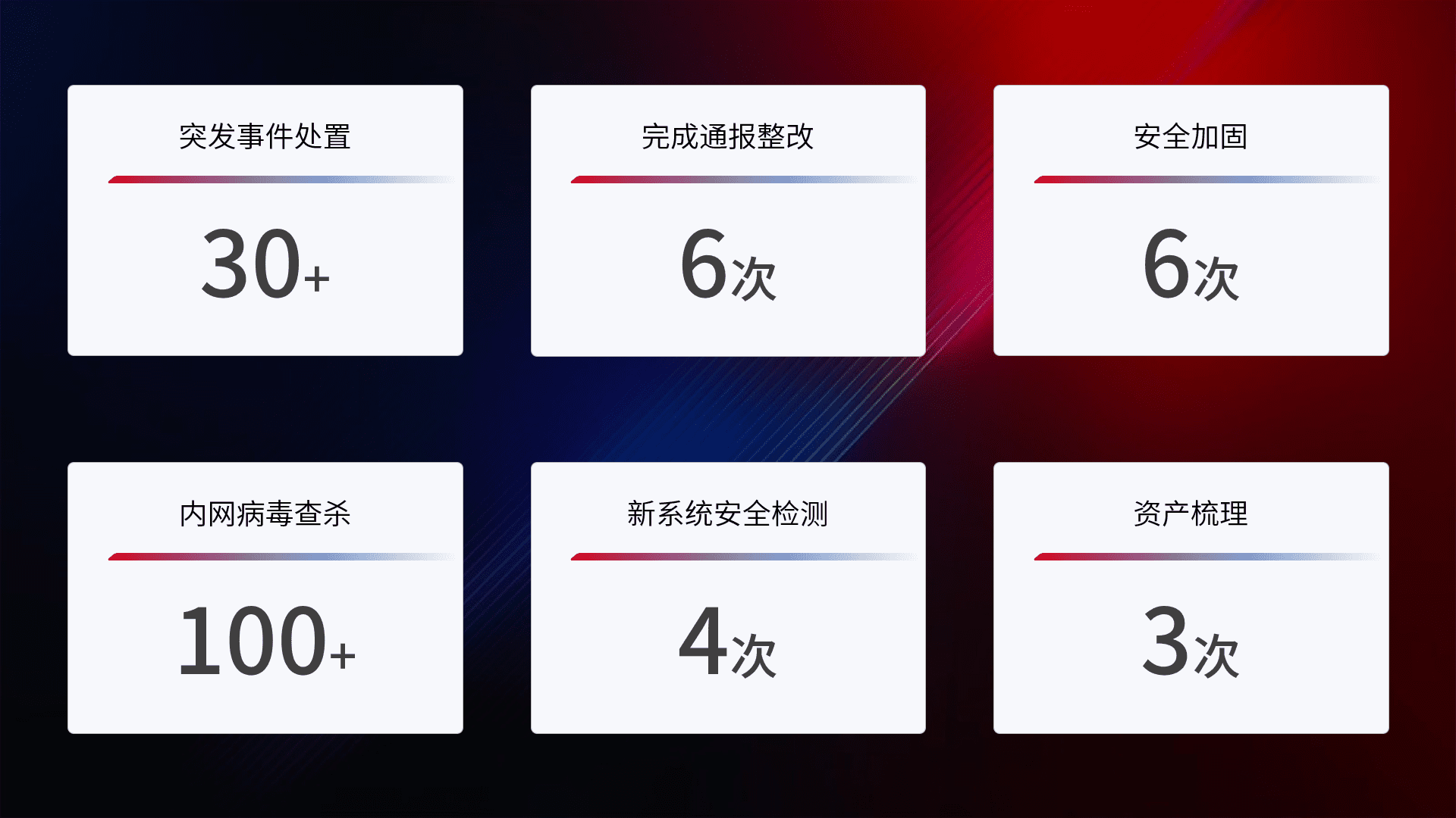 网络安全加固与风险管理:通过技术加固手段,,,,如加强区域隔离,,缩减攻击内网横向移动的范围;优化现有网络安全管理制度,,降低网络威胁暴露面,,,减少被黑客攻击的可能性。。